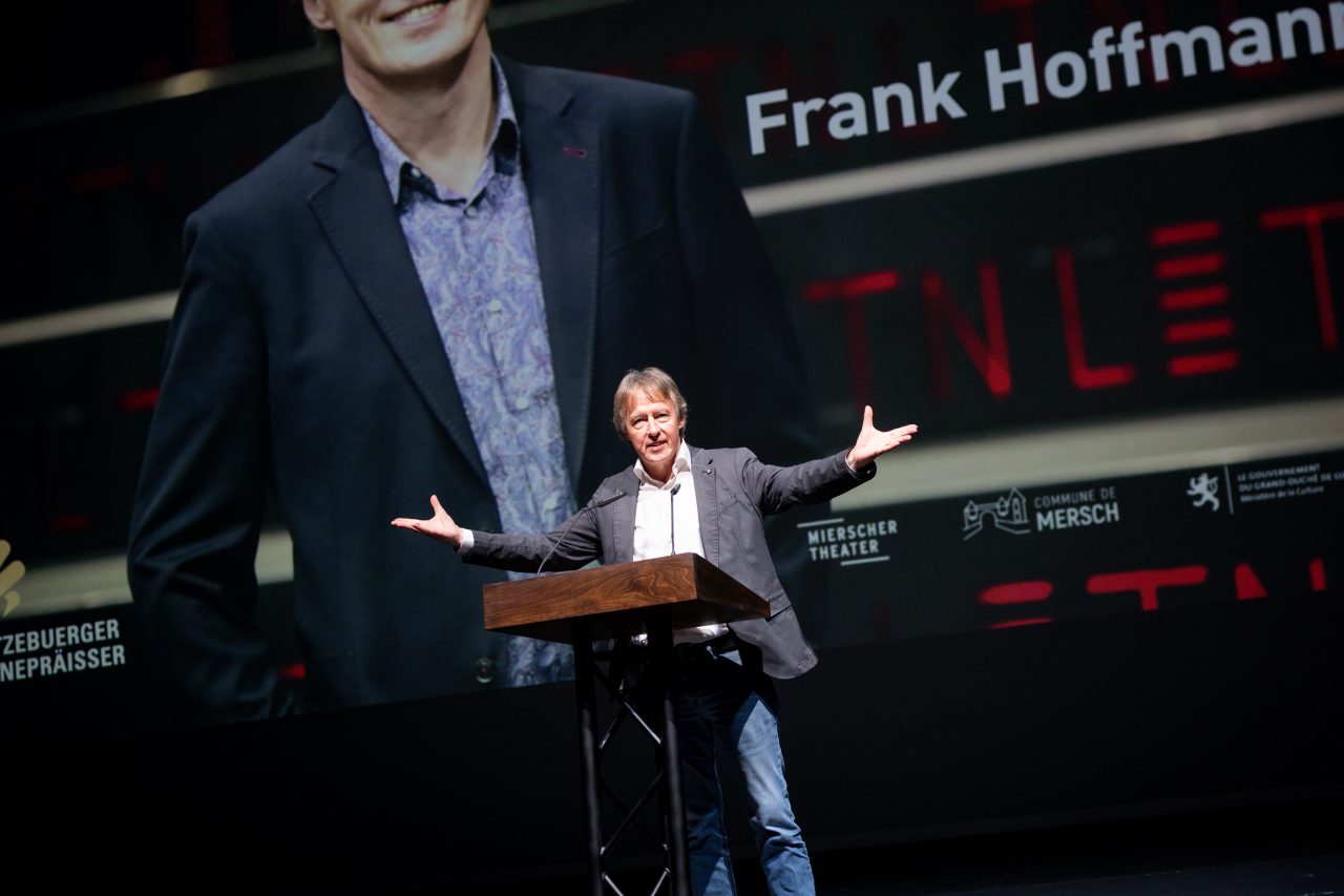 Le prix national du théâtre a été décerné à Frank Hoffmann, directeur de théâtre et metteur en scène, pour l'ensemble de sa carrière au service de la scène théâtrale au Luxembourg. Le jury a salué l'engagement d'un homme qui "a joué un rôle déterminant dans le développement du théâtre luxembourgeois" et qui a œuvré "comme nul autre, à l'internationalisation et à la modernisation de la création théâtrale au Luxembourg."